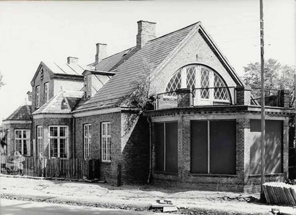 "Baunegaard". Tv. Vest- og sydfacade. Th. anes det gamle gårdnavn på vestfacaden. (Fotos 1968: Lokalhistorisk Arkiv i Gentofte).