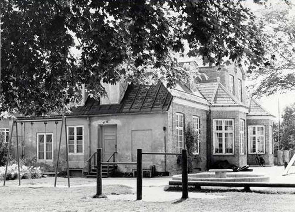 Børnehaven "Baunegaard" lå i bygningen i mere end 20 år, hvorefter den blev flyttet til ny lokaler på skolens område. Gentofte Kommune fotograferede bygningen i 1968 før endelig nedrivning, der var afsluttet i 1969. Tv. Østfacaden, der lå mod Den store skolegård. Vindfang til hovedindgangen, der er nedrevet, var opsat i 1918. (Fotos 1968: Lokalhistorisk Arkiv i Gentofte). Th. Nord- og vestfacaden med børnehavens legeplads.