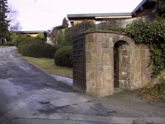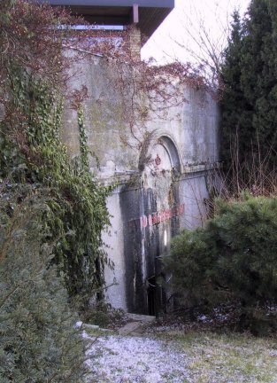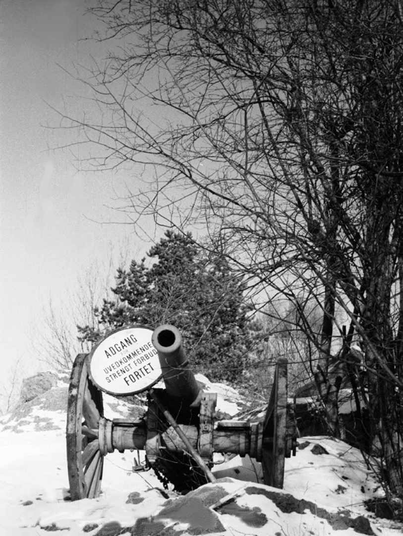 Feb. 1968. Rosavej foran det tidligere Hvidøre Batteri. Adgang for uvedkommende strengt forbudt på fortet (som altså er et nedlagt batteri)! (Gentofte Lokalarkiv).