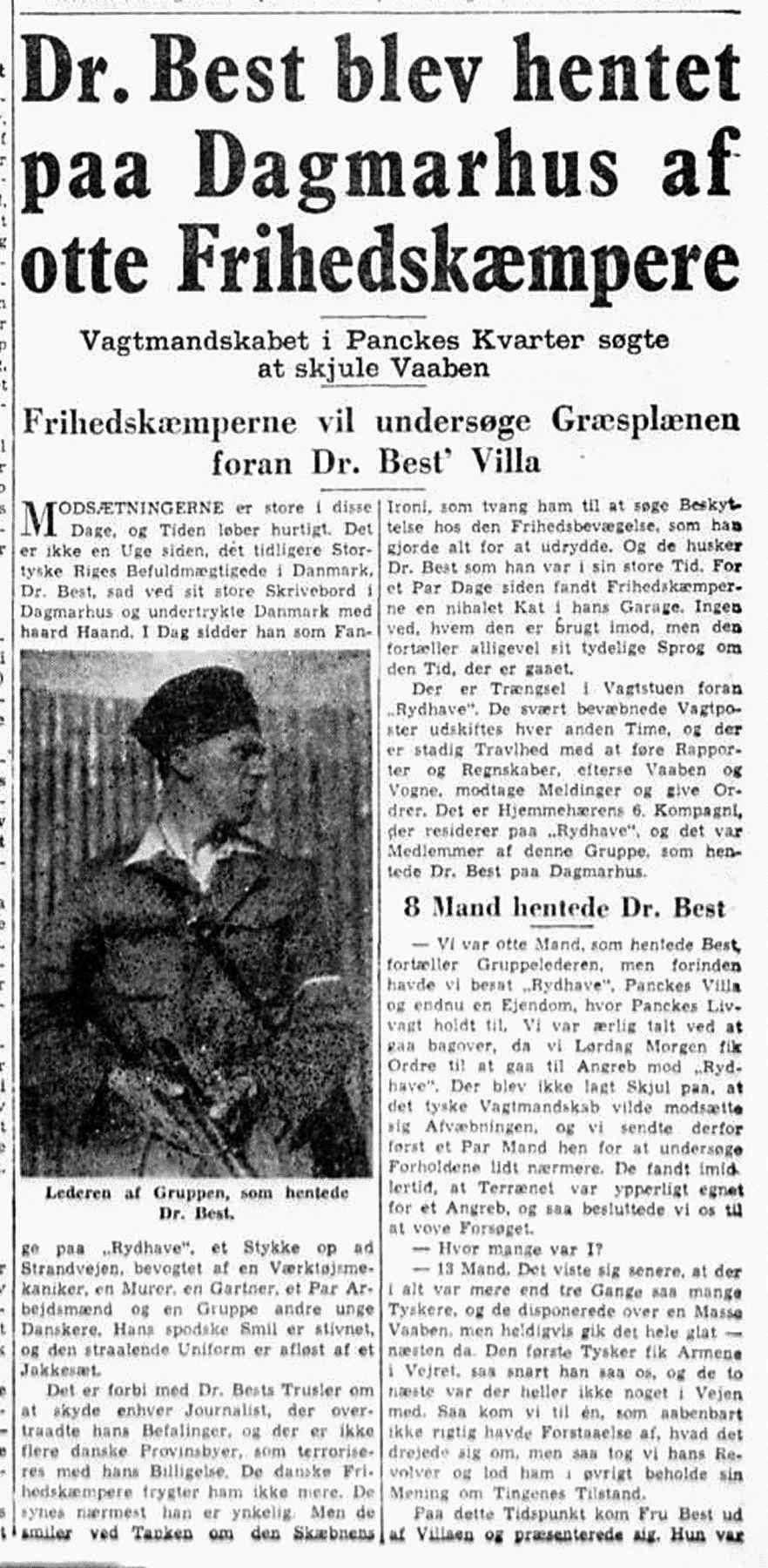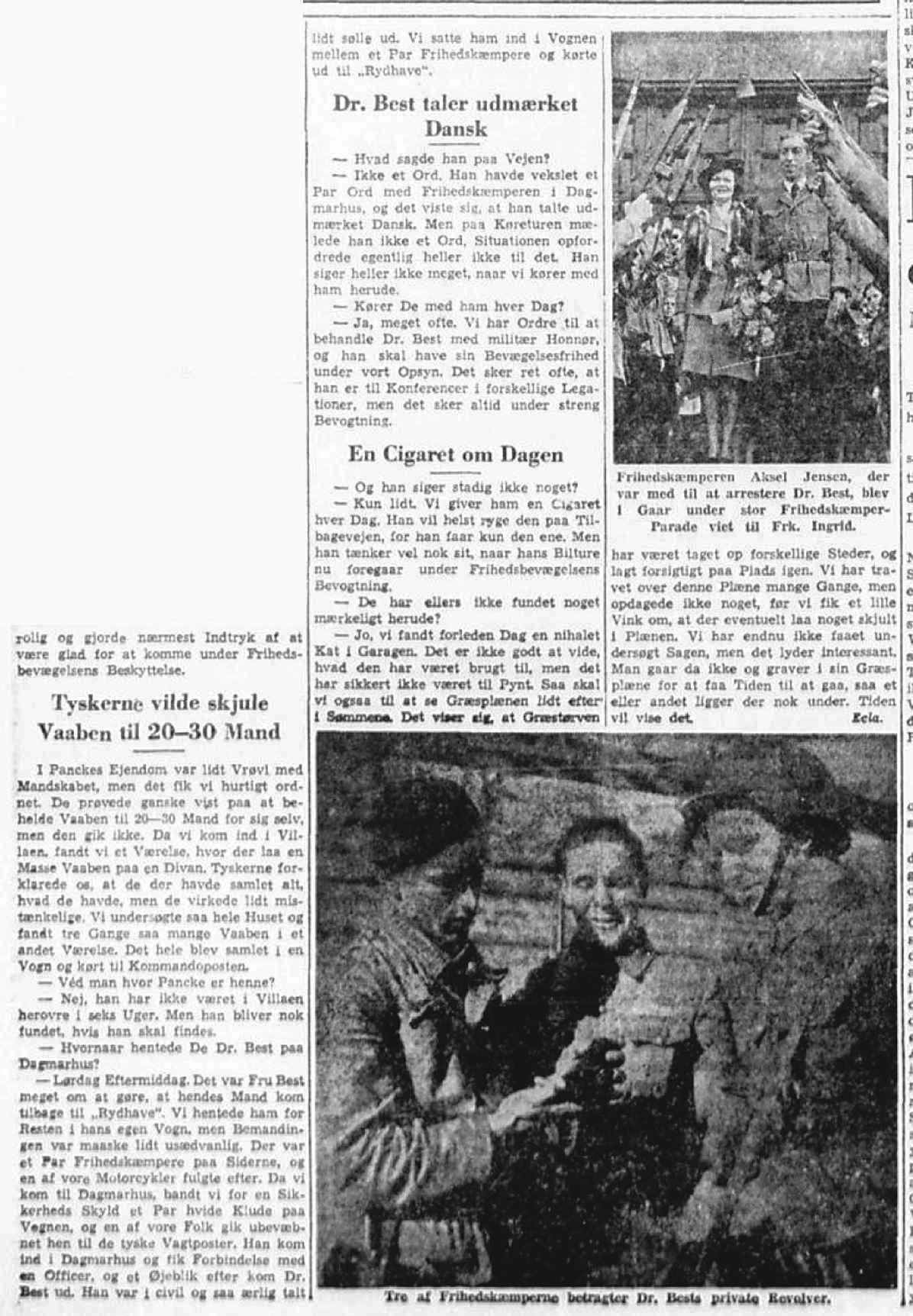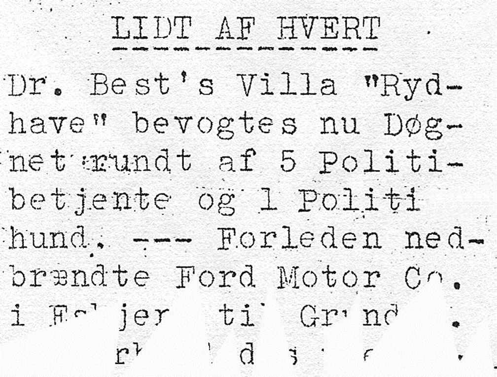 Ekstra Bladet skriver 16. maj 1945 om det urimelige i, at Dr. Best stadig disponerer over Rydhave Se omtalen.