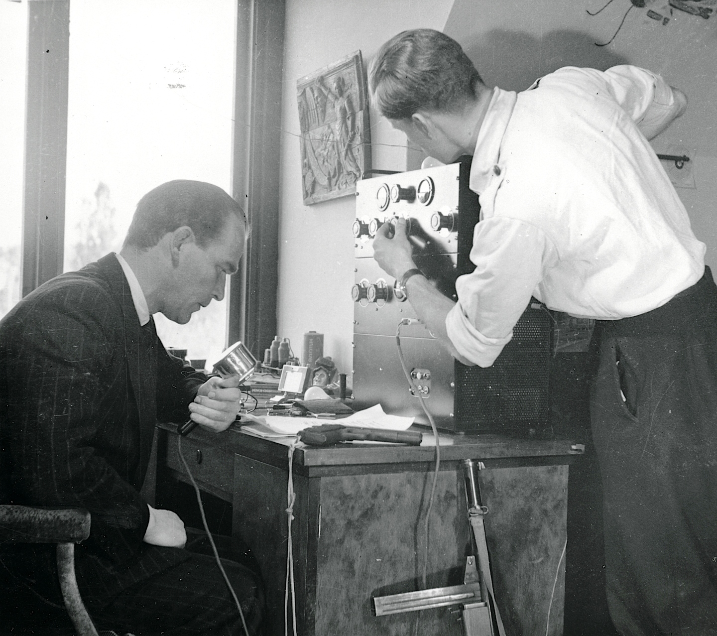 Studenternes Efterretningstjeneste havde fået bygget en radiosender i foråret 1945. Det var bl.a. teknikere fra Statsradiofonien, der havde været de aktive.