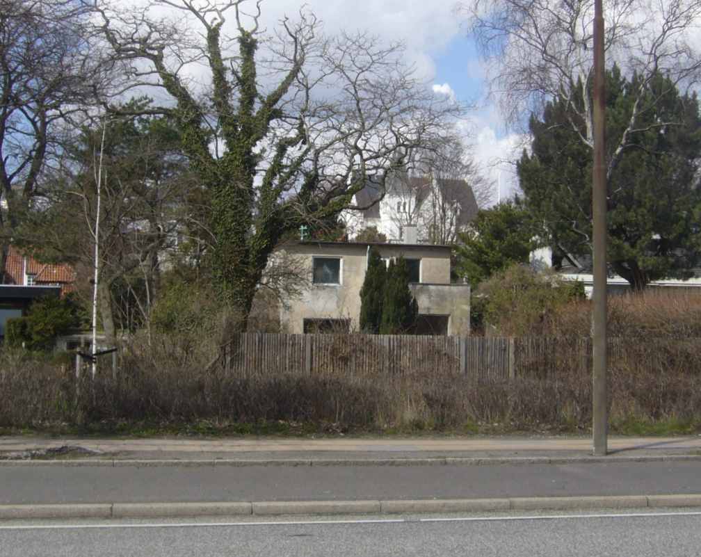 April 2009. Set fra Kystvejen. I forgrunden Strandvejen 196, hvor Dr. Werner Bests tyske livvagt havde kvarter 1944-1945. I bagrunden "Rydhave", hvor den tyske rigsbefuldmægtigede Dr. Best boede fra slutningen af 1942 til 21. maj 1945.