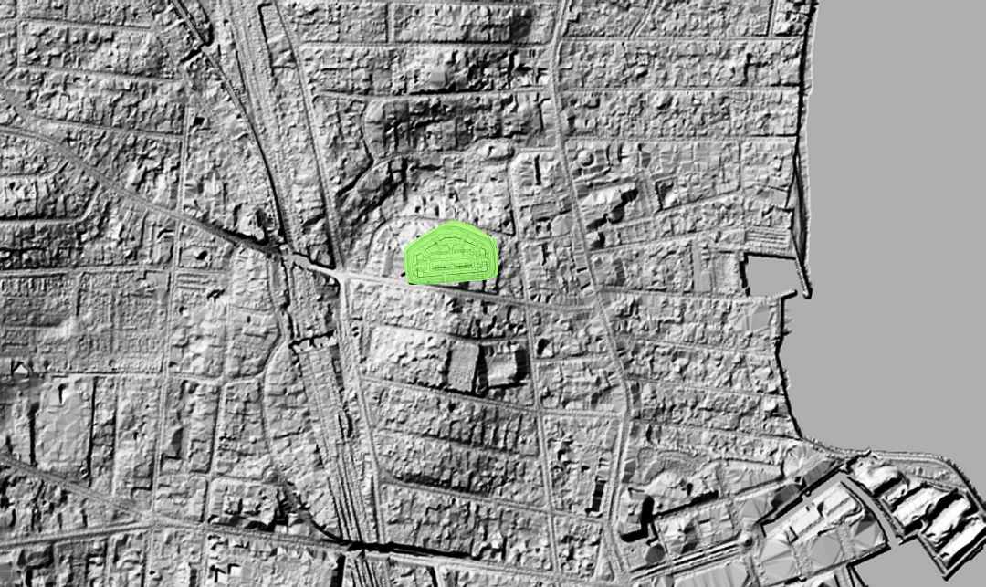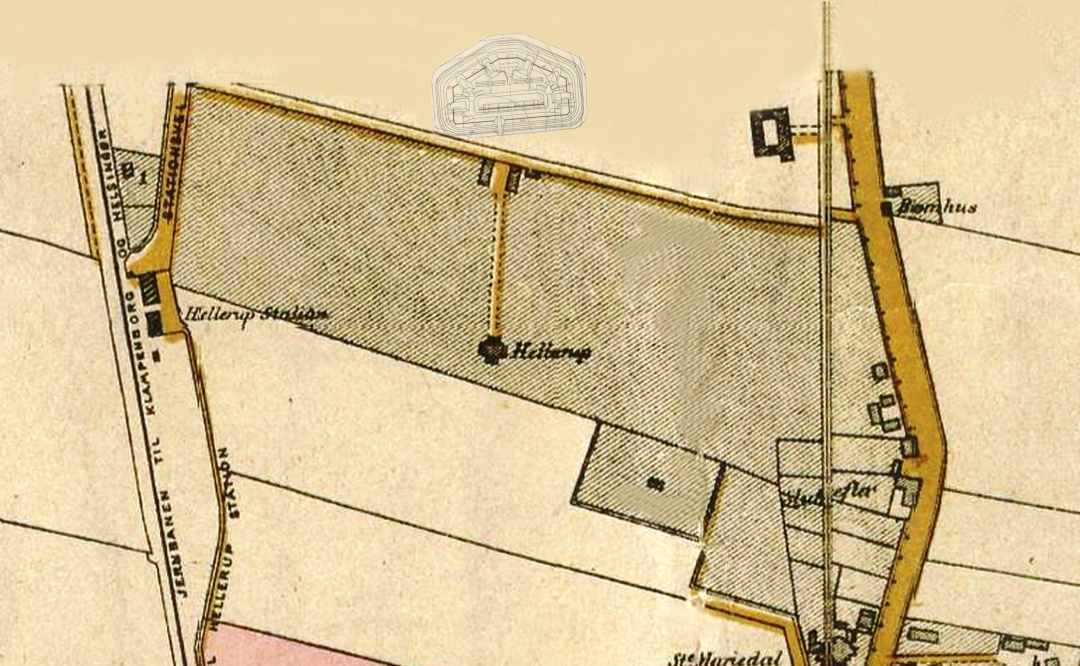 Til venstre ses Klampenborgbanen og til højre Strandvejen. Skansen skulle have ligget på nordsiden af Hellerupvej, hvor Hellerup Skole blev bygget i 1892, 10 år efter planer om skansen.